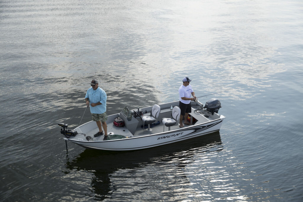 Who says smaller boats need to be short on features? Starcraft’s Patriot series offers every essential in an easy-to-trailer package that fits in most standard garages. Available in a choice of three hull lengths, each Patriot model comes with two wood-free fishing seats, a raised bow casting platform complete with in-floor storage and our legendary FreshCatch aerated livewell system and lockable rod storage.  Optional upgrades like a factory installed electric motor or a Hummingbird GPS system let you personalize this rig exactly as you wish.